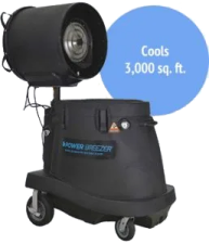 Power Breezer fans are an environmentally-friendly solution, and do not use chemical coolants such as Freon. You’ll get a cool, dry, breeze of jet air.