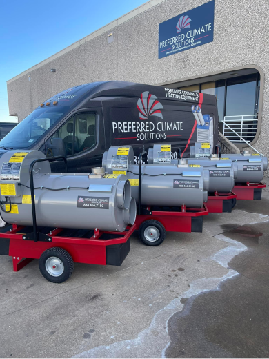 At Preferred Climate Solutions, we strive for excellent customer service. We understand that emergencies happen, which is why we’re open 24/7. If you have a heat emergency, don’t hesitate to give us a call. We deliver units at all times of the day and night. If you are interested in renting a commercial space heater, click here. Or, give us a call at 1-844-739-0785. We look forward to assisting you!